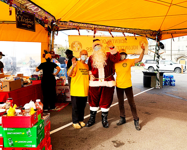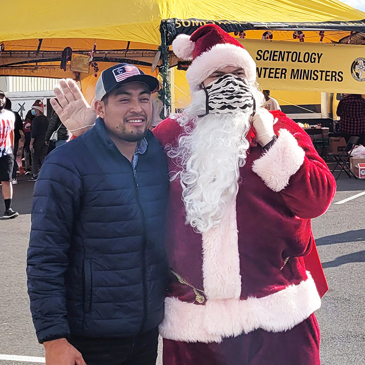 “Bedankt dat je wat geluk brengt”, riep een ouder stel een Volunteer Minister toe, toen ze op kerstdag naar de helder gele tent in Mayfield, Kentucky, liepen. De kerstman, die van de Scientology Kerk Nashville naar Mayfield was gereden, was niet voorbereid op de soorten reacties die hij kreeg.